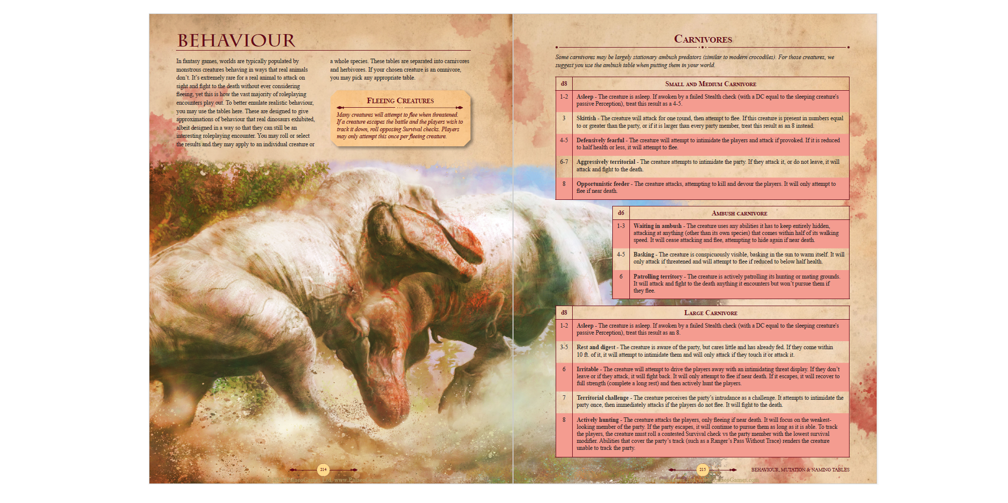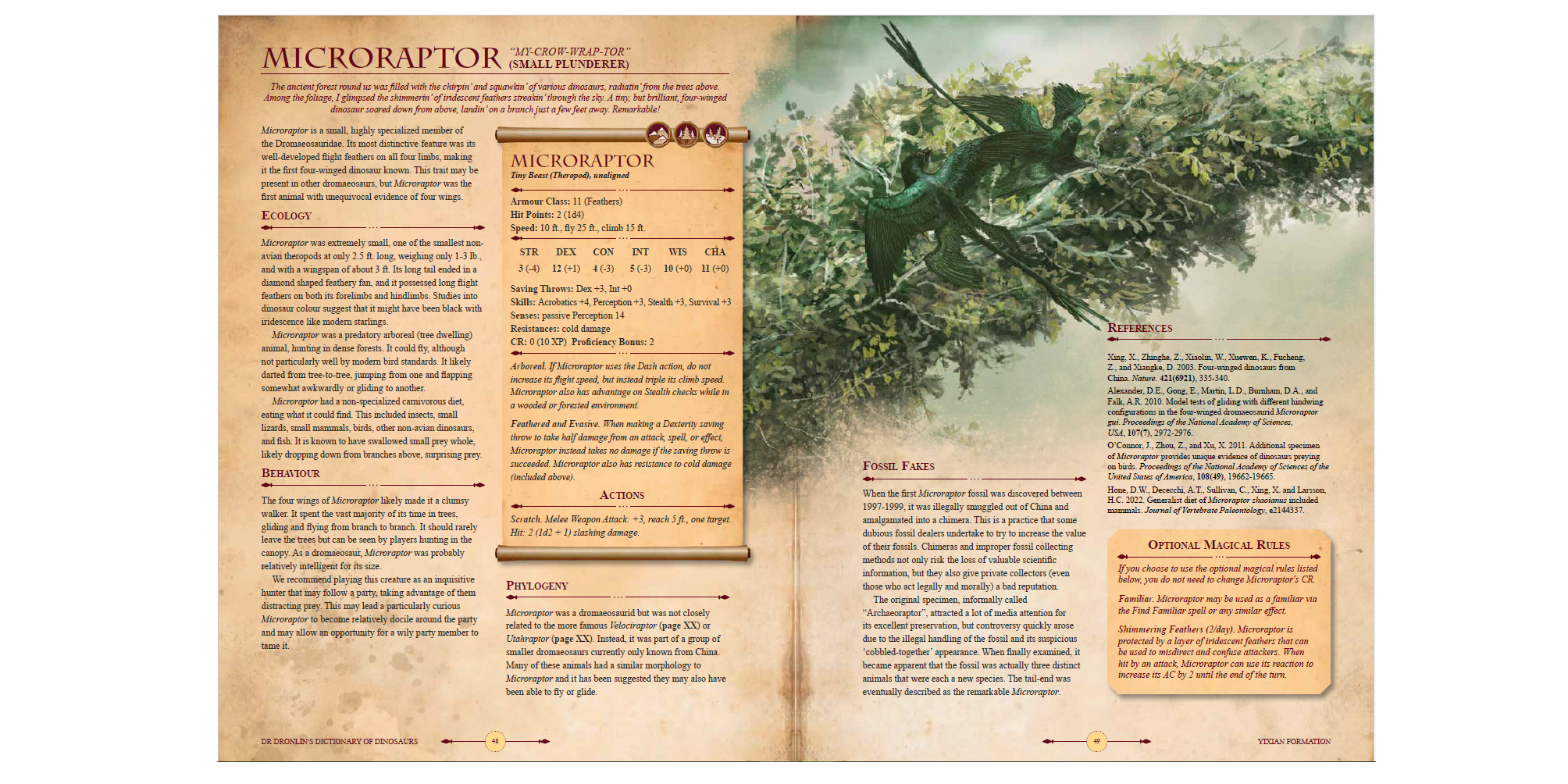 - 57 new Mesozoic creatures with dynamic stat blocks, with a further 55 alternative magical variants.
